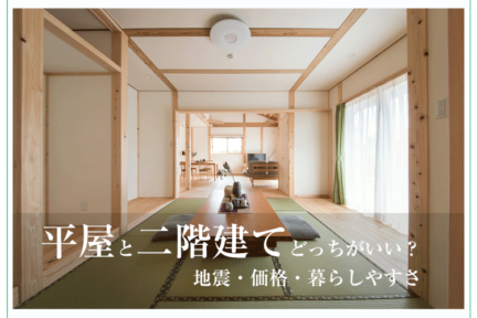 2022.07.15 注文住宅の家づくり 平屋と二階建てどっちがいい?地震・価格・暮らしやすさ 結婚や子育てに備えて家を建てる際、多くの人は無意識のうちに二階建てを思い浮かべるのではないでしょうか?平屋人気は高まってきてはいますが、現実的には二階建てを建てる人が...