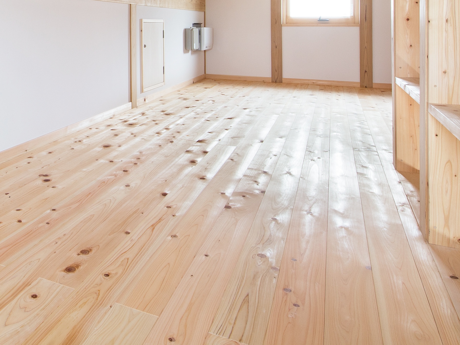 耐久性に優れた檜を構造に使用することで耐震性を強化した構造と、自然素材を使って健康的に住み心地の良い空間を提供する田畑工事の「檜の家」。