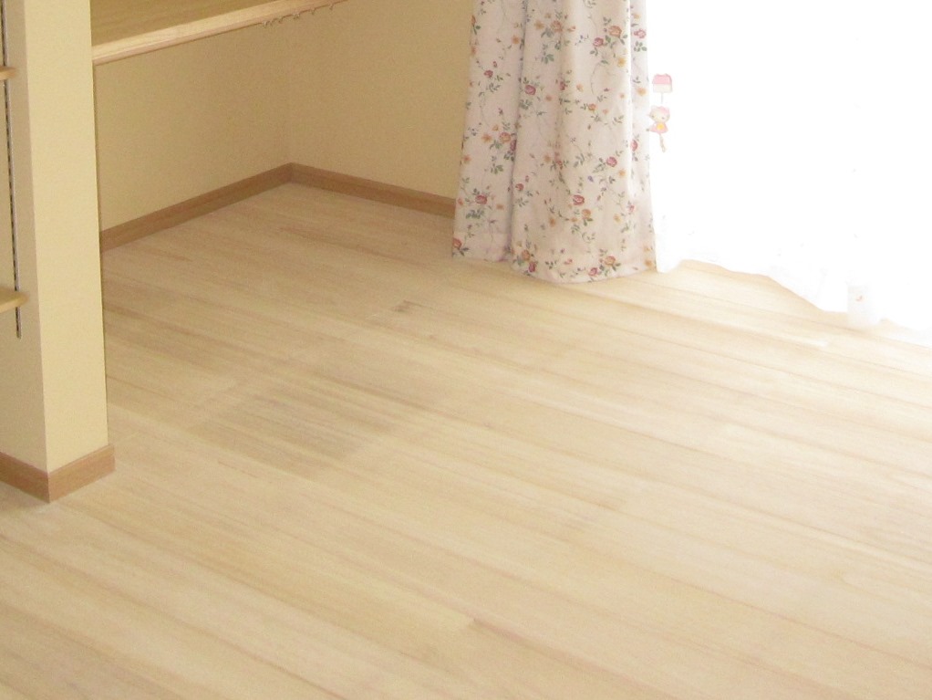 最近は合板の上にスライスした薄い板や木目がプリントされたフィルムを張った複合フローリングと呼ばれる材料が多く使われています。田畑工事では可能な限り接着剤の含有がない無垢板材をおすすめしています。無垢板は足ざわりが良いのはもちろんですが、シックハウスの原因の有害物質を含まない、経年による色の変化で味わいがますなどの良いところがたくさんあります。ただ、使用する部屋によつて滞在時間、使い勝手等が違いますので、部屋の目的によっていろいろな材質の無垢板を使い分けるのが良いと思います。例えば、一般室には天竜桧の無垢や松のフローリング、水廻りは傷がつきにくく耐水性の高いメープルやタモの無垢材、和室に隣接した広縁などは竹(バンブー)、寝室は就寝中の滞在時間が長いので調湿効果の高い桐などの使い分けです。