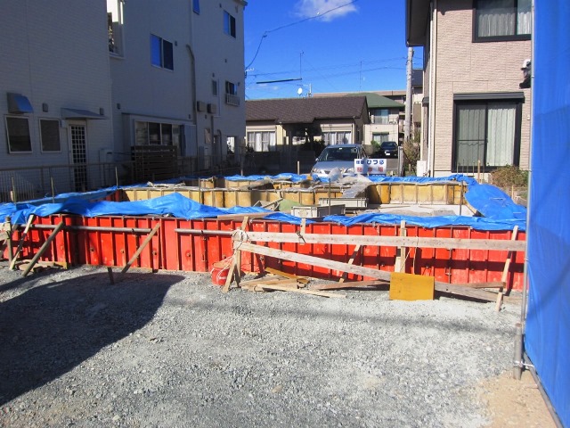 敷地に高低差がある場合に建物基礎工事に先立ち、擁壁工事を行う場合があります。特に2m以上の高さの壁、長い壁、道路