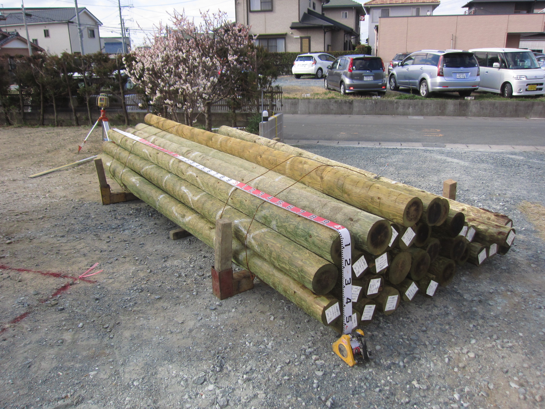 天然石敷きつめ地盤補強 砕石パイル(天然砕石杭) 環境パイル(天然木杭)